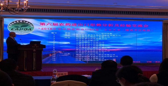 熱烈祝賀我司榮獲“2018年度中國農藥出口50強企...